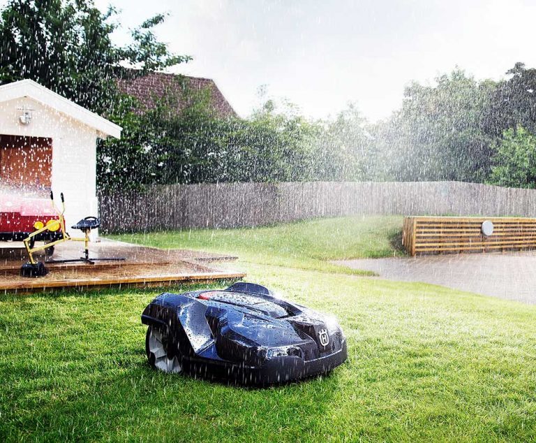 Dank des robusten und wassergeschützen Gehäuses, kann er auch im Regen arbeiten. Über Intelligente Sensoren, fährt er nur dann wenn das Wetter es erlaubt. - AUCH FÜR INDIVIDUELLE GÄRTEN
